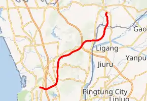 | Pingtung County | Ligang | 25.1 | 15.6 | 25 | Ligang | Eastbound exit and westbound entrance | |