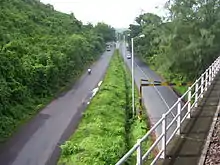 The NHAI has received the approval to upgrade the complete stretch of highway, from start to end, to a four-lane highway, which will be 60 m (200 ft) and grade separated. Out of four states through which the highway goes, Karnataka and Maharashtra have received approval from the centre for the 60 m (200 ft) wide highway. Kerala and Goa have requested a narrower width of 45 m (148 ft), and there are protests against the highway being widening in these states.[8][9] NHAI feels the Kerala state government was lethargic in acquiring land. The four-laning of NH-66 (Mumbai-Kanyakumari) has been completed until Thalapadi in the Karnataka-Kerala border and only its stretch in Kerala is pending.[10] In the beginning of 2017, Kerala government has announced the six laning of NH 66 in the state as a major agenda and said to be completed in three years. But the high value of land will make it hard for compensation, and the ruling party's influence is controversial in relation to similar acquisitions like GAIL pipeline.[11][12] Now the process is going fast in spite of protests from various highway action forum groups,[13] especially because it connects Kerala's capital Thiruvananthapuram to Kochi and of tourism importance.[14] NH 66 has one of the highest vehicle densities in the state compared to sections of the highway in other states, so its development is vital for the overall development of the state, also the HAM model to be followed in widening will be instrumental in collecting the funds for the development. NHAI has been infamous for their heavy and long tenure of toll collection in the state.[15] Till now 961 km (597 mi) stretch out of 1,608 km (999 mi) long National Highway 66 (NH 66) have been made into four-lane highway. Karnataka and Maharashtra are widening to six-lane & 529 km (329 mi) stretch out of 1,608 km (999 mi) long National Highway 66 (NH 66) have been made into six-lane highway. Tunnels will be constructed in the stretches where the road goes through the forest or ghat section. As the forest department does not allow land acquisition for road widening purposes, tunnels which can accommodate four-lane expressways are proposed for such stretches of the road in NH-66.[16] One such proposal is the Maharashtra government's proposal of 1.4 kilometre tunnel at the Karnala bird sanctuary.