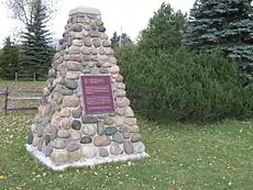 On Harkin's recommendation, the government created the Advisory Board for Historic Site Preservation (later called the Historic Sites and Monuments Board of Canada) in 1919 in order to advise the Minister on a new program of National Historic Sites.[10] Brigadier General Ernest Alexander Cruikshank, a noted authority on the War of 1812 and the history of Ontario, was chosen as the Board's first chairman, a post he held for twenty years.[20] The first place designated and plaqued under the new program was the "Cliff Site" in Port Dover, Ontario, where two priests claimed sovereignty over the Lake Erie region for Louis XIV of France in 1670.[21]