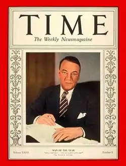 Enactment of the National Industrial Recovery Act climaxed the first 100 days of Roosevelt's presidency. Hugh S. Johnson, Raymond Moley, Donald Richberg, Rexford Tugwell, Jerome Frank, and Bernard Baruch—key Roosevelt advisors—believed that unrestrained competition had helped cause the Great Depression and that government had a critical role to play through national planning, limited regulation, the fostering of trade associations, support for "fair" trade practices, and support for "democratization of the workplace" (a standard work week, shorter working hours, and better working conditions).[23][24] Roosevelt, himself the former head of a trade association, believed that government promotion of "self-organization" by trade associations was the least-intrusive and yet most effective method for achieving national planning and economic improvement.[3][9] Some work on an industrial relief bill had been done in the weeks following Roosevelt's election, but much of this was in the nature of talk and the exchange of ideas rather than legislative research and drafting.[25] The administration, preoccupied with banking and agriculture legislation, did not begin working on industrial relief legislation until early April 1933.[9][25][26] Congress, however, was moving on its own industrial legislation. In the Senate, Robert F. Wagner, Edward P. Costigan, and Robert M. La Follette, Jr. were promoting public works legislation, and Hugo Black was pushing short-work-week legislation.[25][26] Motivated to work on his own industrial relief bill by these efforts, Roosevelt ordered Moley to work with these Senators (and anyone else in government who seemed interested) to craft a bill.[25][26]
