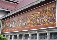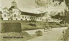 The National Museum was established on the site of the former Selangor Museum.[1] It was built by the British and Selangor governments in 1898 following the formation of the Federated Malay States in 1896. On 10 March 1945, during the end of World War II, the right wing of the museum was bombed and destroyed by the US B-29 bombers, from the Allied Forces.[2] The museum's collection was then moved to the Perak Museum in Taiping.
