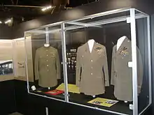 The museum has many pieces of U.S. Army Air Forces and U.S. Air Force clothing and uniforms. At any time, more than 50 World War II-vintage A-2 leather flying jackets are on display, many of which belonged to famous figures in Air Force history. Others are painted to depict the air planes and missions flown by their former owners. The displays include the jacket worn by Brigadier General James Stewart, P-38 ace Major Richard I. Bong's sheepskin B-3 jacket and boots, an A-2 jacket worn by one of the few USAAF pilots to leave the ground during the attack on Pearl Harbor, and President Ronald Reagan's USAAF peacoat.