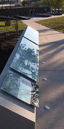 The 'terrain' tilts to direct visitors to the wall, with undulations that is intended to create "an uncertainty in experience and reflects the uncertain path that police tread in the performance of their duty."