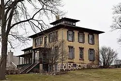 Watertown | 2-story cream brick Italianate farmhouse with cupola built by Prussian immigrant Hartwig in 1864 at the center of his grain and cattle farm. Hartwig was an early producer of Holstein-Friesians, which started many herds in the area.[23][24] |