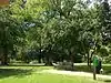 Jackson | The green includes the War Memorial Building, and a Confederate memorial. |