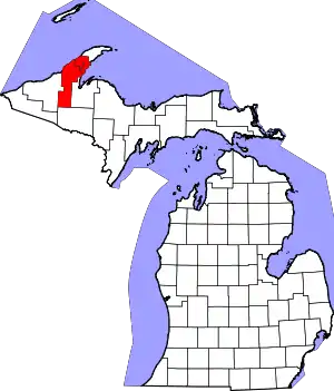 Houghton County was created in 1845, and then encompassed the present-day Houghton County as well as Keweenaw County and Ontonagon County.[3]