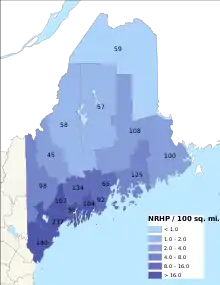 There are approximately 1,600 properties and districts listed on the National Register of Historic Places in the U.S. State of Maine. Each of the state's 16 counties has more than forty listings on the National Register.