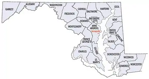The following are approximate tallies of current listings in Maryland on the National Register of Historic Places. These counts are based on entries in the National Register Information Database as of April 24, 2008[2] and new weekly listings posted since then on the National Register of Historic Places web site.[3] There are frequent additions to the listings and occasional delistings, and the counts here are not official. Also, the counts in this table exclude boundary increase and decrease listings which modify the area covered by an existing property or district and which carry a separate National Register reference number.
