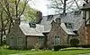Whitefish Bay | Another Flagg-system home built in 1925 by Meyer & Co. - this one 1.5 stories and clad in limestone, with a U-shaped footprint, ridge dormers, round-capped chimneys, and an attached garage.[19][20] |