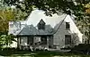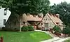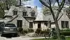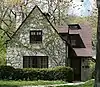 Wauwatosa | Another Flagg-system home built by Meyer & Co., this one 1.5 stories and clad in Tennessee quartzite, with a steep Tudor Revival roofline, ridge dormers, and round-capped chimneys. Built 1924.[11][12] |
