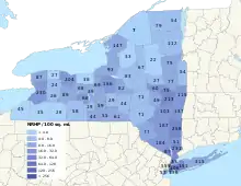 The numbers of properties and districts in New York State or in any of its 62 counties are not reported by the National Register. Following are approximate tallies of current listings from lists of the specific properties and districts.[2]