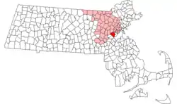 Extends into Cambridge, Waltham, and Watertown and Weston, elsewhere in Middlesex County, and into Boston in Suffolk County | |