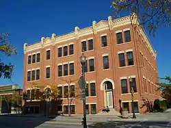 Sheboygan | 1885 2-story factory with timber frame clad in cream brick with Richardsonian Romanesque stylings. Jacob Jung's company built carriages, wagons and sleighs.[63][64] |