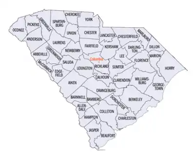 This is a list of the properties and historic districts in each of the 46 counties of South Carolina that are designated National Register of Historic Places.