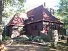 Lac du Flambeau | Rustic French Norman "piece sur piece" chateau with Scandinavian overtones, built in 1923, with boathouse, on the peninsula between Lake To To Tom and Long Interlaken. Hultin was a Swedish immigrant who became a prominent funeral director in Chicago, and built this retreat up north.[17][18] |
