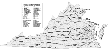 The following are approximate tallies of current listings by county and independent city. These counts are based on entries in the National Register Information Database as of April 24, 2008[2] and new weekly listings posted since then on the National Register of Historic Places web site.[3] There are frequent additions to the listings and occasional delistings and the counts here are approximate and not official. The counts in this table exclude boundary increase and decrease listings which modify the area covered by an existing property or district and which carry a separate National Register reference number.