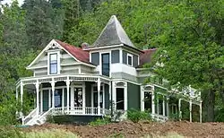 The Dalles | Joseph Kelly, a successful farmer during the establishment of wheat as a cash crop in Wasco County, built and retired to this house in 1908. He and his wife Margaret became prominent local philanthropic figures. The house is also notable for its unusual vernacular rendering of the Queen Anne style.[27] |