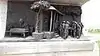 To the left of the main memorial there is a life sized statue of Gandhi with 78 volunteers. These statues are made of bronze.[1] An Open Call for sculptors was made and 40 sculptors were selected from India, Austria, Bulgaria, Burma, Japan, Sri Lanka, Tibet, UK and United States. Each sculptor created two sculptures each. After the clay sculptures had been completed, molds and fiber casts were made and the sculptures were cast in silicon-bronze alloy by Studio Sukriti in Jaipur.[7]