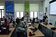 The American Library is named in memory of Victor Kytasty, who dedicated himself to the development and growth of the National University of Kyiv-Mohyla Academy. It is a public library maintained as a department of the National University of Kyiv-Mohyla Academy Library. It was opened after the U.S. Embassy in Ukraine transferred the library from the America House to the campus of the Kyiv-Mohyla Academy in 1998. The library offers readers up-to-date English-language resources, books for kids and adults, free Internet access, and fun events like Friday night film showings. Address: 8/5 Voloska str., building 4 room #116.[6][7]