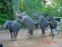 The elephant performances are held at the elephant arena with a certain time table. Pachyderms in shows perform antics such standing on their heads, wiggling their backs to music, hopping on one foot and standing up on their hind legs.