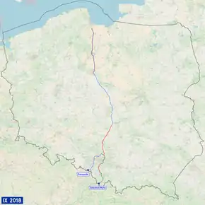 National road 1 (Polish: Droga krajowa nr 1) is a route in the Polish national road network. The highway connects the northern and southern regions of Poland, running from Gdańsk to Zwardoń at the Slovak border, traversing the Pomeranian, Kuyavian-Pomeranian, Łódź and Silesian voivodeships. It has four bridges over the Vistula river. Most of the national road 1 is a component of European highway E75.