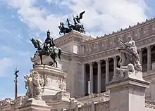 The Vittorio Emanuele II Monument (Italian: Monumento Nazionale a Vittorio Emanuele II) or (Mole del) Vittoriano, improperly called Altare della Patria (English: Altar of the Fatherland), is a monument built in honor of Victor Emmanuel II, the first king of a unified Italy, located in Rome, Italy.[10] It occupies a site between the Piazza Venezia and the Capitoline Hill. It is currently managed by the Polo Museale del Lazio, the Italian Ministry of Defense and the Museo Centrale del Risorgimento Italiano.