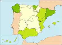 In Spanish jurisprudence, the term nationality appears for the first time in the current constitution, approved in 1978 after much debate in the Spanish Parliament.[8][9] Although it was explicitly understood that the term referred to Galicia, the Basque Country, and Catalonia,[4][5][8][10] the constitution does not specify any communities by name. Between the strong centralist position inherited from Franco's regime and the nationalist position of the Galicians, Basques, and Catalans, a consensus developed around this term. It was applied in the respective Statutes of Autonomy once all nationalities and regions acceded to self-government or autonomy, and were constituted as autonomous communities.[8]