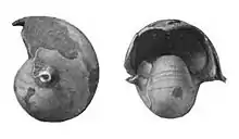 The Nautilaceae began in the Late Triassic with Cenoceras, a golublar to discoidal genus derived from the Syringonautilidae and possibly from Syringonautilus. Cenoceras, the earliest member of the Nautilaceae and Nautilidae, is the only nautiloid known to have crossed the upper Triassic boundary and the only one known from the Lower Jurassic.