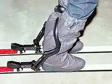 A ski binding has to provide two types of support. One is a locking function that keeps the ski under the boot, but releases when too much strain is placed on the binding (as in the case of a fall). In the Nava System, this was provided by the sole plate and the ski bindings, in the same general way as any modern binding.[2]