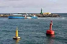 Lateral marks indicate the edge of the channel. The standards are defined by the International Association of Marine Aids to Navigation and Lighthouse Authorities (IALA). Approaching harbour port a vessel leaves port hand marks to port (left) and starboard hand marks to starboard (right). Port hand marks are cylindrical, starboard marks are conical. If the mark is a pillar or spar shape, then a topmark is fitted which is either cylindrical or conical as appropriate.[1]