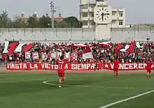 CAFF members favored the unification of football in Cyprus. They tried for three years to persuade the CFA to accept them as members, without success.[8] The existence of two football federations (with two separate championships) in a country such as Cyprus was unprecedented. The situation created economic hardship, and hampered the development and improvement of Cypriot football.[1][16][17][18] The clubs felt that sports should reflect fraternity and friendship rather than discrimination. In December 1952, the first issue of the sports newspaper Athlitiki supported the unification of Cypriot football. Foreign coaches of CFA clubs also supported unification, leading the CFA to respond that "their statements opposed the spirit of the Federation".[17] Coaches of CFA's teams were initially hostile towards consolidation supporters.[17] In summer 1953, the majority of Cypriot sportspeople expressed support for football unification. In August of that year Nea Salamina, Omonia, Alki and Antaeus submitted a joint application to the CFA to join the Cypriot First Division. On 19 September, the CFA accepted[17] Nea Salamina and Omonia for membership.[17][19][20] However, the organization's negative attitude towards those clubs continued.[17] First, the league rejected applications from Alki, Orfeas Nicosia and Neos Asteras (although the first two joined a year later),[19] and second, arguing that according to its constitution, only one team must participate in the Cypriot First Division and two teams in the second division. The CAFF clubs accepted these conditions in the interest of unification. In an ad hoc meeting of CAFF, members agreed that Omonia would join the first division and Nea Salamina and Antaeus the second division.[17] Following these decisions, CAFF disbanded.[16] The first game between teams from the two federations (a friendly) was played by Nea Salamina and Anorthosis at GSE Stadium on 27 September 1953. 5,200 fans were present at the game between the two Famagustian clubs. The final result was 3–1 in favor of Anorthosis, and the match was described as an evidence of superior sportsmanship and brotherhood of fans by Athlitiki.[21][22]
