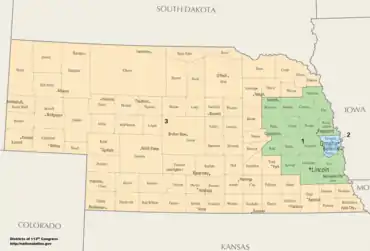 List of members of the Nebraskan United States House delegation, district boundaries, and the district political ratings according to the CPVI. The delegation has a total of 3 members, all of whom are Republicans