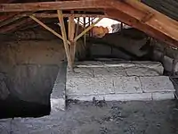 Near the salt mines of Kitros lie the graves of the southern necropolis of Pydna. It is much smaller than the northern cemetery, but the tombs are more magnificent. Archaeologists assume that the wealthier inhabitants of Pydna were buried here. The excavations began in 1984 and were stopped in 2003 after several breaks. To date, 83 graves have been uncovered, but they form only a part of the southern necropolis. The oldest graves date back to 350 BC, and the last burial places are dated to 146 BC. They thus represent the largest period of burial culture from the ascent to the fall of the Macedonian kingdom.[8]