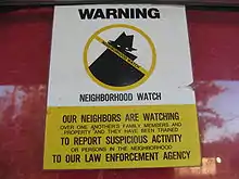 | Wikimedia Commons has media related to Neighborhood watch signs. |