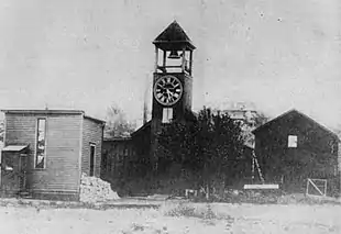 O. E. Wheeler became interested in what Johnson was doing and they formed a partnership in January 1872. Wheeler was a commercial shipper and owned tug boats. Soon their business of Wheeler & Johnson developed a specialty of repairing and building sawmill machinery. They also built shingle-mills as a speciality with a crew of twelve to fifteen men. Within a few years, the business outgrew the small machine shop they started. They then built a new brick building with a slate roof, designed to resist any windblown sparks in case of another town inferno. Soon afterwards they built a second brick building next to the first one. It was ultimately intended for tower clock manufacture.[1][8]