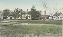 Located on the height of land separating the watersheds of the Connecticut and Merrimack rivers, Nelson became primarily an agricultural community. The uneven surface proved good for grazing. But with streams rising from four ponds to provide water power, it also developed industry. The village of Munsonville, situated on the stage line at the outlet of Granite Lake, manufactured cotton cloth and chairs. The L. J. Colony Chair Co. produced between 25,000 and 30,000 chairs annually, hiring women and children from local farms to weave the rattan seats and backs. At one time, Munsonville had 1,000 homesteads and 10 school districts. The mills have since closed, and Munsonville is today a resort of summer homes.[3]