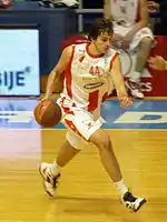He was also a member of the team that represented Serbia at the EuroBasket 2015.[27] In Serbia's opening game, an 80–70 win against Spain, he was Serbia's key player, posting 24 points, 10 rebounds, and 4 assists. The following day, he made a game-winning shot against Germany. In the last match of the group phase, he scored 19 points, grabbed 8 rebounds, and had 4 assists against Italy. Serbia dominated in the tournament's toughest group, Group B, with a 5–0 record, and then eliminated Finland and the Czech Republic in the round of 16 and quarterfinal games, respectively. However, they were stopped in the semifinal game by Lithuania, by a score of 67–64,[28] and eventually lost to the host team, France, in the bronze-medal game, by a score of 81–68.[29] Being one of the team's leaders, along with Miloš Teodosić and Miroslav Raduljica, Bjelica averaged 13.9 points, 6.6 rebounds, and 2.7 assists per game, on 56.1% shooting from the field and 37.5% shooting from behind the three-point line.[30]