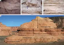 Nemegtomaia is known from the Nemegt and Baruungoyot Formations, which date to the upper Campanian–lower Maastrichtian ages of the Late Cretaceous period, about 70 million years ago. Though this taxon is known only from the Nemegt locality, unidentified oviraptorid remains from other localities may belong to it. The Nemegt massif has numerous canyons or gorges, up to 45 metres (148 ft) deep, which have some of the best exposures of these formations. The rock facies of the Nemegt Formation are thought to represent a humid, fluvial (associated with rivers and streams) environment, whereas those of the Baruungoyot Formation are thought to represent an arid or semi-arid environment, with aeolian (affected by wind) beds. These two formations with their diverse fossils were historically thought to represent sequential time periods with different environments, but in 2009 the Canadian palaeontologist David A. Eberth and colleagues found that there was partial overlap across the transition between them. The two formations "interfinger" across a stratigraphic interval that is about 25 m (82 ft) thick, which suggests that the fluvial and aeolian environments coexisted when the area was sedimented.[2][12][23][24]
