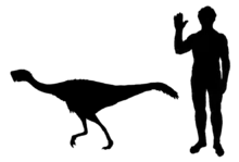 The clade Oviraptorosauria is generally regarded as a group of non-avian (or non-bird) theropod dinosaurs, and their similarity to birds (Aves) has often been noted. Fossils of oviraptorosaurs in the family Caenagnathidae have historically been confused with those of birds, and some researchers have gone so far as to consider oviraptorosaurs as a whole more closely related to birds than to other non-avian dinosaurs. In 2002 Lü and colleagues used the then unnamed Nemegtomaia to show similarities between birds and oviraptorosaurs, and found the latter group to be closer to birds than to bird-like dinosaurs such as dromaeosaurs. They therefore concluded that oviraptorosaurs were flightless birds rather than non-avian dinosaurs, and noted that the boundary between birds and dinosaurs was becoming more and more difficult to delineate.[3] Other researchers have instead found dromaeosaurs and troodontids to be most closely related to birds, together forming the group Paraves; oviraptorosaurs, therizinosaurs, and alvarezsaurs are just outside this group. The wider group that includes oviraptorosaurs and Paraves is called Pennaraptora, and this group is defined by the presence of pennaceous feathers (feathers with a stalk).[16]