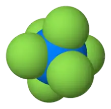 Neptunium(VI) fluoride (NpF6) is the highest fluoride of neptunium, it is also one of seventeen known binary hexafluorides. It is an orange volatile crystalline solid.[1] It is relatively hard to handle, being very corrosive, volatile and radioactive. Neptunium hexafluoride is stable in dry air but reacts vigorously with water.