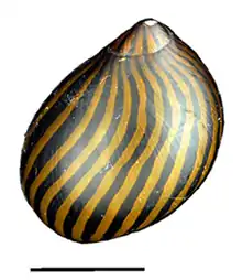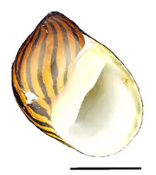 ![]() Abapertural view of a shell of Neritina turrita. Scale bar is 10 mm. |