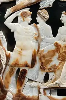 The very next year saw a direct attack on Agrippina and Nero. Tiberius sent a letter to the Senate in which he accused Agrippina and Nero of misconduct, but was unable to convict them of any attempt at rebellion, with the attitude of the former and the sexual activity of the latter were the primary accusations against them.[23] Agrippina was popular with the people, as was the family of Germanicus, and the people surrounded the senate-house carrying likenesses of the two in protest against the letter.[24] The Senate refused to come to a resolution on the matter until it received a clear direction from the emperor to do so.[25] Tiberius found it necessary to repeat his charges, and when he did, the Senate no longer delayed; the fate of Agrippina and Nero was sealed. Nero was declared an enemy of the state, removed to the island of Pontia, and was killed or encouraged to kill himself in AD 31. According to Suetonius, he put an end to his own life when the executioner appeared before him with the instruments of death.[20][19][26]