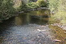 A creek known as Nescopeck Creek is in the vicinity of Nescopeck Mountain.[7] Additionally, Black Creek, a major tributary of Nescopeck Creek, empties into the larger creek at the base of the ridge.[8] The ridge is north of the creek for a portion of its length. There is a valley known as the Nescopeck Valley which is between Nescopeck Mountain and Buck Mountain. Nescopeck Creek flows through this valley. The valley is 20 miles (32 km) long and 5 miles (8.0 km) wide.[8] Some streams on the ridge are part of the Lehigh River watershed.[17]