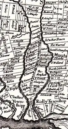 By the time Penn arrived, there were several small settlements in the area, which became known as Providence Township. Providence Township comprised today's Nether Providence, Rose Valley, Media, and Upper Providence. On October 17, 1683, the residents of Providence Township petitioned the Court of Chester County, of which they were then a part, to establish a road from Providence to Chester. The court approved the creation of Providence Great Road (now Route 252).[6]