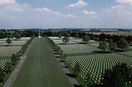 Netherlands American Cemetery and Memorial (Dutch: Amerikaanse Begraafplaats Margraten) is a Second World War military war grave cemetery, located in the village of Margraten, 10 km (6.2 mi) east of Maastricht, in the most southern part of the Netherlands. The cemetery, the only American one in the Netherlands and dedicated in 1960, contains 8,291 American war dead and covers 65.5 acres (26.5 ha). It is administered by the American Battle Monuments Commission.[1]