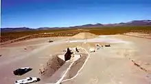 The Nevada Test Site was the primary testing location of American nuclear devices from 1951 to 1992; 928 announced nuclear tests occurred there. Of those, 828 were underground.[8] (Sixty-two of the underground tests included multiple, simultaneous nuclear detonations, adding 93 detonations and bringing the total number of NTS nuclear detonations to 1,021, of which 921 were underground.)[9] The site is covered with subsidence craters from the testing.