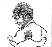 In the winter of 1916–17 Cardus continued his private studies while working intermittently; among various jobs, he collected insurance premiums for a burial society.[61] Early in January 1917 he wrote to C. P. Scott, The Manchester Guardian's editor, asking for any available post at the paper, as "the means whereby to continue my education".[62] To bolster his chances he enclosed specimens of his writing.[63] The result was, first, a temporary unpaid position as Scott's secretary, but in mid-March Scott offered a job on the paper's reporting staff.[64] The writer J. B. Priestley later asserted that Cardus, who did not know shorthand, was engaged not as a reporter, but as a "writer".[65] In Cardus's own account of these years he appears to have been fully engaged in reporters' duties, his lack of shorthand being dismissed by the chief reporter, Haslam Mills, who paraphrased Shakespeare: "Some men are born to shorthand, others achieve shorthand, while others have shorthand thrust upon them".[66][n 5] Mills advised Cardus to concentrate on style: "We can be decorative at times; we can even be amusing. Here, possibly, you will find scope".[67]