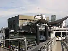 In front of the Aquarium is a harbor seal exhibit, which can be seen for free without entering the building.[28] Four Northern fur seals and four California sea lions are on exhibit behind the Aquarium in the open-air New Balance Foundation Marine Mammal Center on the harborside terrace, which opened in 2009 with views of Boston Harbor.[29] All the New England Aquarium's marine mammals participate in daily training sessions that are open for public viewing and participation.
