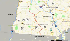 ![]() Map of southern New Hampshire with NH 31 highlighted in red | ||||