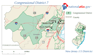 New Jersey's 7th congressional district includes all of Hunterdon County, and parts of Essex, Morris, Somerset, Union, and Warren counties.